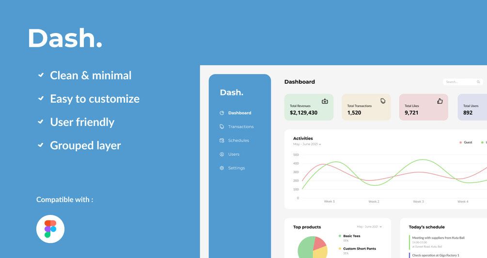 Dashboard page with minimalist, simple, and non clustered user friendly design. Easy to customize and organized layer. You will get the design in Figma file format that consists of: